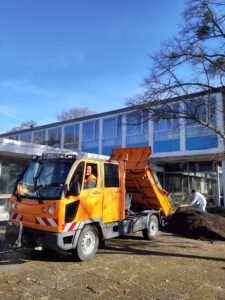 • Und die Firma Schnellecke lieferte uns ca. 5m³ Kompost-Erde, welche auf beiden Flächen verarbeitet wurde.